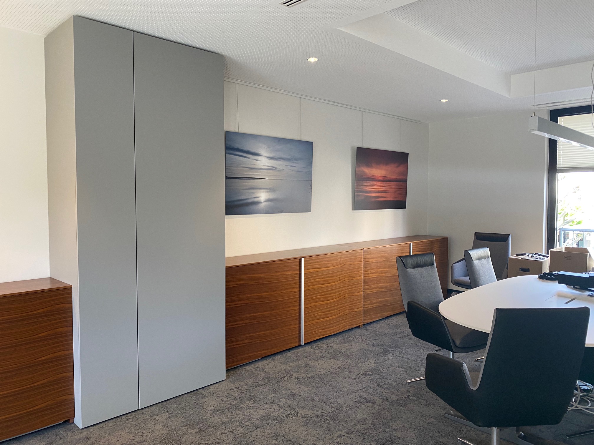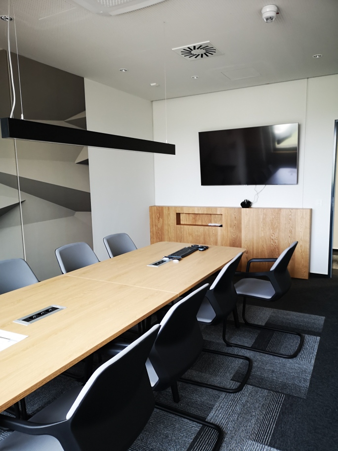 Durch die Kombination aus technischer Funktionalität und architektonischer Zurückhaltung entstand ein hochwertiger Besprechungsbereich mit angenehmem Raumklima und optimierter Akustik.